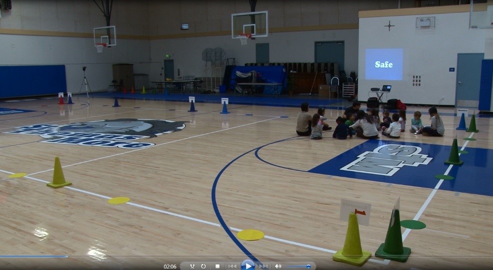 - Introduce the beanbags as new equipment. Have each child get a beanbag to play with as you spread out the remaining beanbags inside the boundaries (minimum two or three items per child is desired). Once the rest of the equipment is spread out, have them all drop their beanbags on the floor. Explain that you need the children’s help in cleaning up the “garbage” on the floor. Demonstrate how to clean up the garbage by picking up a beanbag and placing it on a spot at the boundaries. Have the children continue to pick up the beanbags and place them on any of the boundary spots until the area is cleaned up. Tell the children “When all of the mess is cleaned up, stand near me, inside the boundaries so I know you are ready”. Compliment them on doing a nice job of cleaning up the area, and then tell them they can now make a beanbag mess. “When I say go, I want each of you to safely get a beanbag from the boundaries and bring it inside the boundaries. Then drop it on the floor so we have another big mess. Ready? Go!” Continue the activity, cleaning up and making a mess and encouraging the children to move away from each other and to travel safely.
