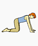 Take your weight on your seat/bottom and hold your knees in to your chest and stomach. Let your body be round like a ball! Hold this for 10 seconds. Keep your ball shape and slowly rock onto your back, and then up onto your seat again. You can continue to transfer your weight as you slowly rock back and forth, from your back to your seat, keeping your ball shape.